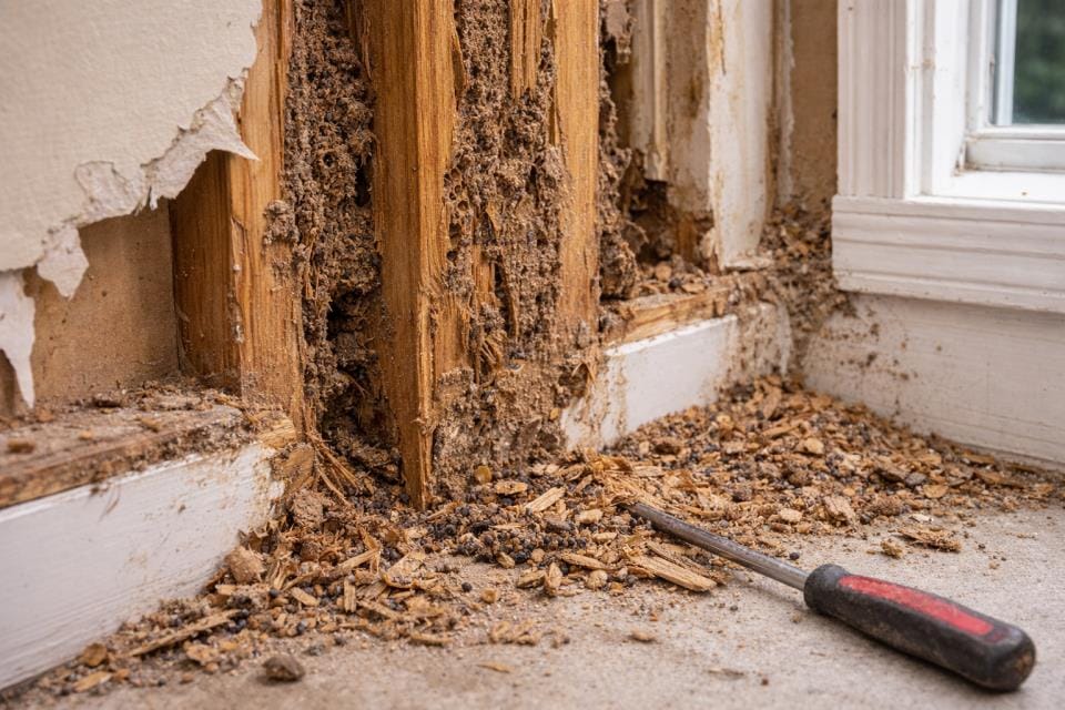 Termites are often referred to as “silent destroyers” because they live and feed inside wood, making damage difficult to detect early.